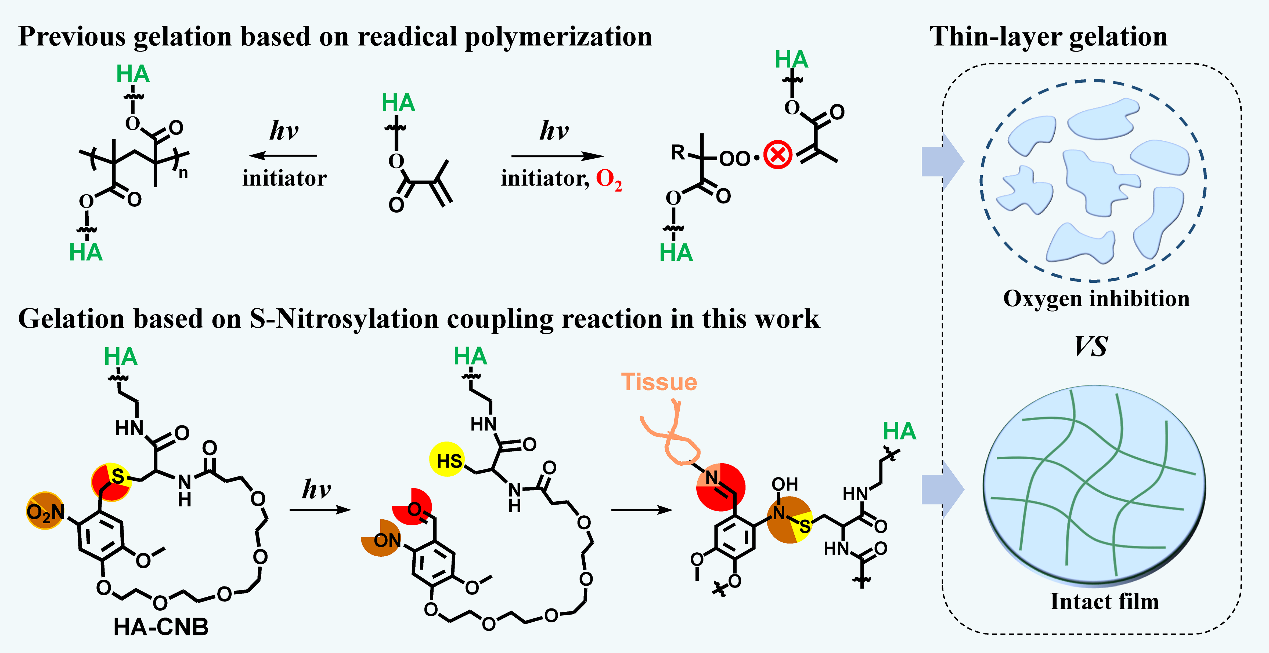 圖1 快速、非自由基光偶聯反應構建水凝膠粘合劑