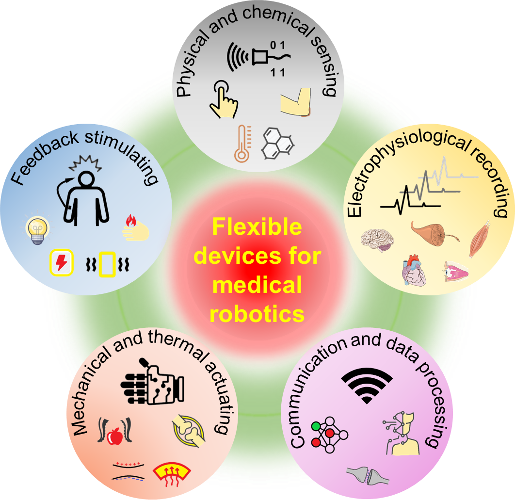 圖1. 柔性電子器件作為人機接口在醫療機器人學中的代表性應用。