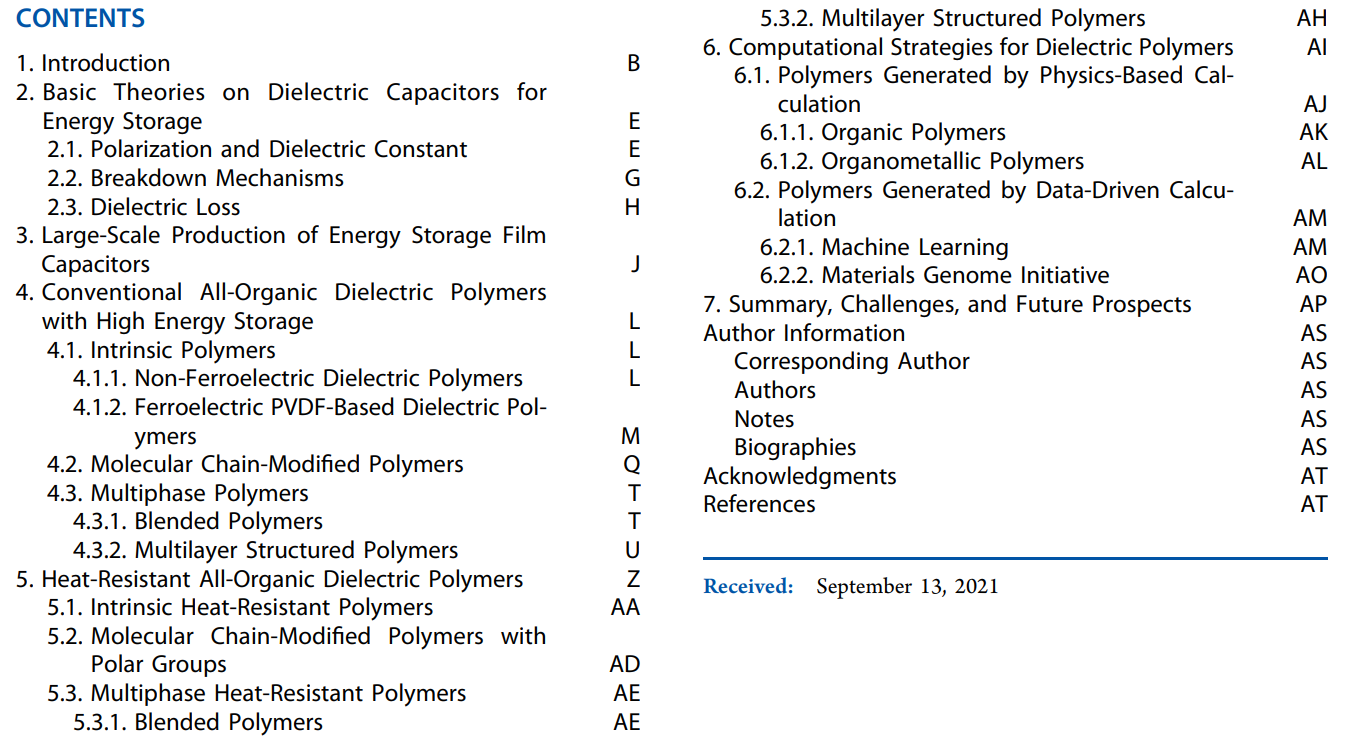 2021年12月23日,清華大學電機系先進能源電工材料與器件實驗室(AEEMD)黨智敏教授團隊在國際頂級期刊Chemical Reviews(影響因子60.622)發表題為Recent Progress and Future Prospects on All-Organic Polymer Dielectrics for Energy Storage Capacitors綜述文章,總結了電容器用全有機介質薄膜材料以及相關計算策略的研究進展。