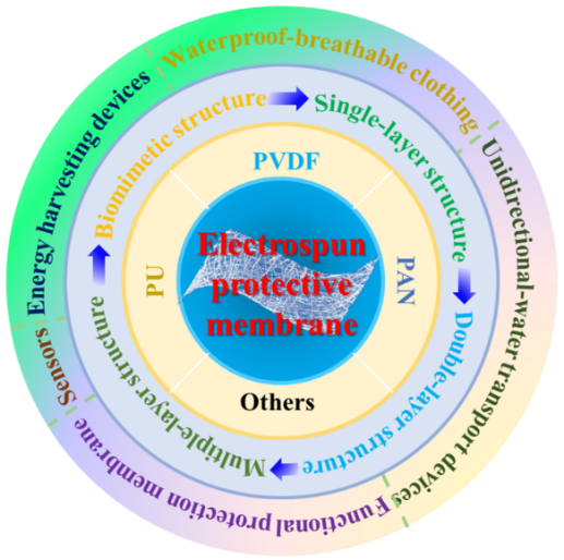 圖1. 功能型性電紡防護纖維薄膜的構建及其廣泛應用