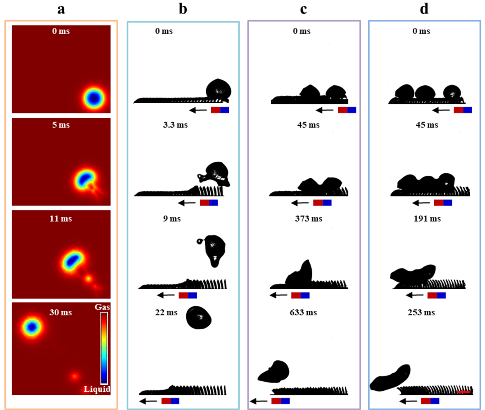 圖2 超疏水磁響應微肋結構上液滴的動態行為。