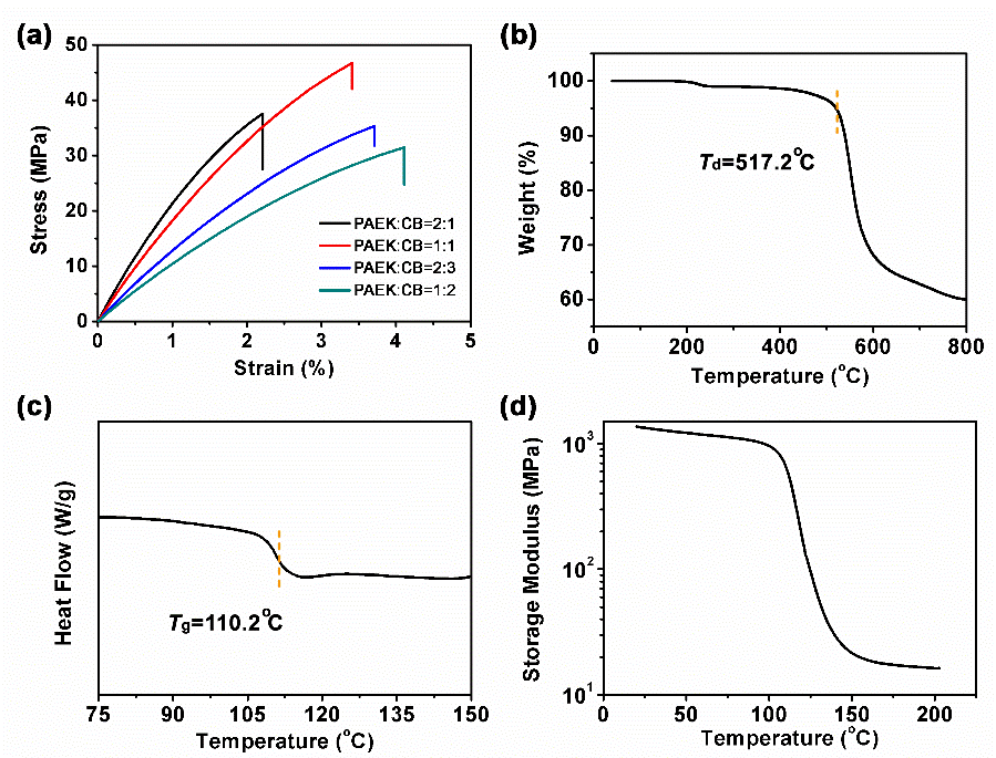 圖2 PAEK-CB的機械性能與熱穩定性表征