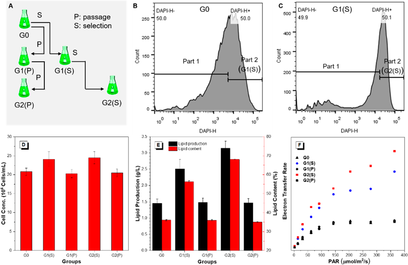 近期,香港中文大學(深圳)理工學院唐本忠教授團隊開發了一種脂滴特異性靶向的具有聚集誘導發光(AIE)的熒光分子4-(二對甲苯基氨基)苯甲醛(TPA-A)。該團隊利用TPA-A實現了對小球藻生長期間脂滴大小和數量的實時監測,從而獲得了最佳的收獲時間。此外,通過流式細胞分選技術(FACS)還鑒定出具有高脂質含量的藻類細胞并進行收集,以此開展篩選性的傳代培養。在連續兩代的篩選培養后,優選藻種表現出兩倍于原代細胞的油脂含量和產量。該工作以“Fluorescent Imaging and Sorting of High-Lipid-Content Strains of Green Algae by Using an Aggregation-Induced Emission Luminogen”為題發表在《ACS Nano》上。文章第一作者是香港科技大學深圳研究院博士后劉海翔博士。該研究得到國家重點研發計劃,香港研究基金,香港科技與創新基金以及深圳市科技創新基金的支持。
