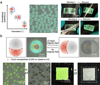 圖2.雙面微液滴顏色自恢復(a)和磁控開關(b)。