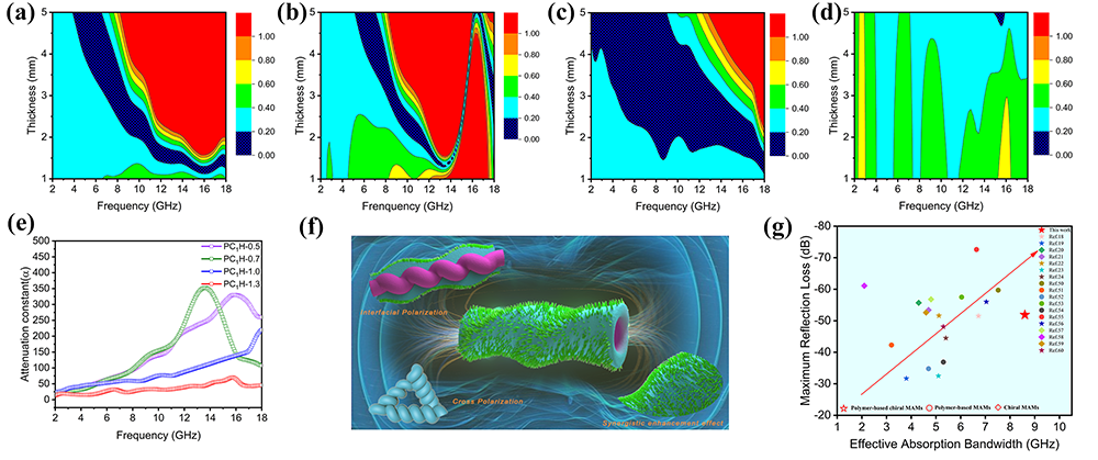 - 建立了多尺度手性結(jié)構(gòu)電磁響應(yīng)模型并揭示了多級手性結(jié)構(gòu)協(xié)同增強的電磁損耗機理。