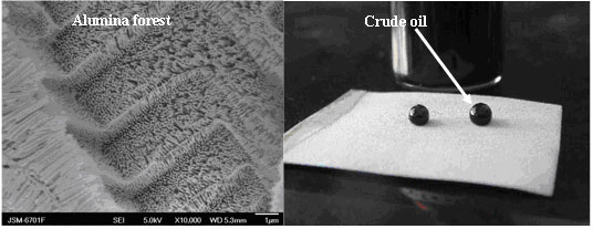 超疏水/超疏油表面由于在工業中廣闊的應用前景(如輸油、儲油,防油爬行等),近幾年來一直為表面功能材料研究領域的熱點領域。然而,能廣泛地超疏油類特別是各種低表面能液體仍然是這一領域中的一個突出難點,相關報道目前很少。