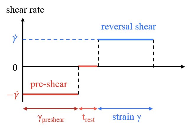 圖2. “預剪切-松弛-反向剪切”流變實驗方法的示意圖。