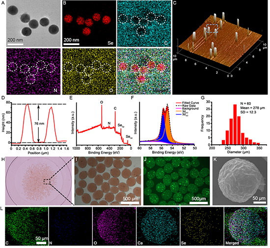 圖2 : HA-Se納米顆粒和SHSe納米硒凝膠微珠的合成與表征