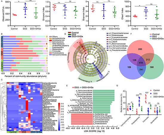 圖7:16S核糖體RNA測序分析SHSe納米硒凝膠微珠調控的腸道菌群