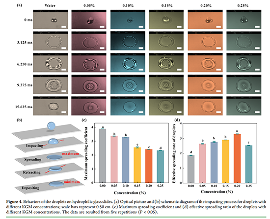 • KGM提高液滴在親水表面的穩(wěn)定鋪展面積