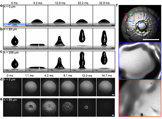 香港城大王鉆開教授團隊《Nat. Commun.》:反常的液滴彈跳現象,水膜越厚,液態金屬液滴彈跳能力越強