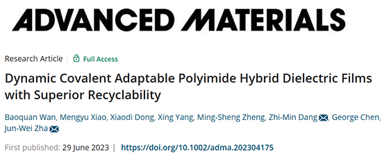 聚酰亞胺因獨特的分子結構而具有優異的耐高、低溫特性,力學性能,耐溶劑性以及十分可靠的絕緣性能,被廣泛用于電工電子等領域。然而,材料在長期的高溫度、高壓力及高電場等惡劣環境中服役會面臨機械/電損傷而失效的問題。良好的動態特性能夠恢復材料的各項性能指標,促進多次循環利用。然而,高玻璃化轉變溫度的聚酰亞胺分子鏈段常溫常壓下運動困難,無法進行破壞后的主動回收和修復。