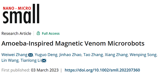 哈工大李天龍、鄭大張偉偉《Small》:受變形蟲啟發的毒液微型機器人