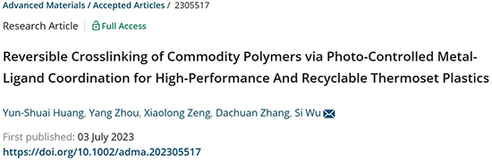 - 吉林大學孫俊奇教授課題組 NSR:基于強韌且可變形的納米相區制備超高強度和超高韌性的可逆交聯塑料 2025-11-22