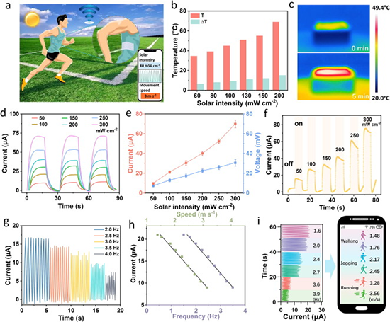 圖4. 光-熱-電貼片用于人體運動檢測的應用展示
