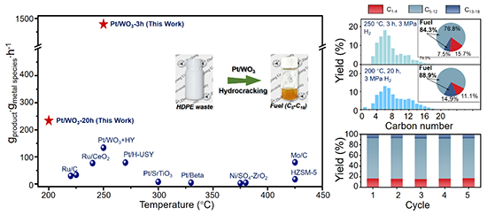 占全球塑料產量一半以上的聚烯烴塑料,由于其飽和碳氫鏈結構,極難自然降解。通過化學方法裂解廢棄聚烯烴,將其轉化為高值化學品,實現升級回收利用,意義重大。然而,如何在相對溫和的條件下高效地實現廢棄聚烯烴的高值回收,挑戰極大。
