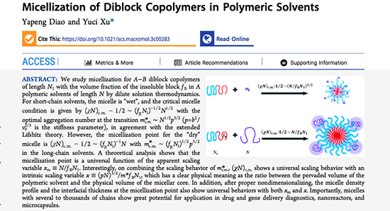 寧波大學徐玉賜教授課題組 Macromolecules: 兩嵌段共聚物在高分子溶劑中的“濕” 、“干”膠束