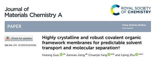 浙江大學朱利平教授團隊 JMCA:高結晶性共價有機框架膜用于溶劑傳輸和精確分子分離