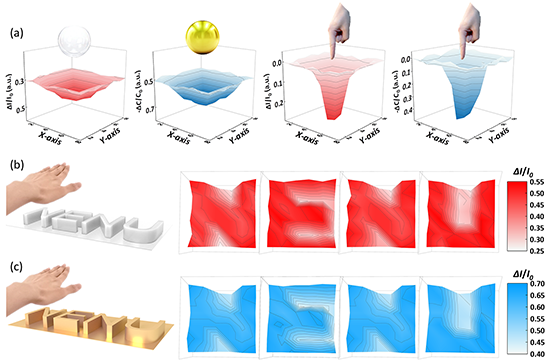 近期,東北師范大學湯慶鑫教授團隊、梁中翥團隊合作開發(fā)了一種新型超柔電子紋身傳感器,具有清晰識別紙張上的毛筆和鉛筆筆跡的驚人能力(圖1,圖2)。這種傳感器具有輕薄的特點,可以貼合在人體皮膚上,并隨著人體皮膚的形變而形變,并依舊保持其功能性。這種器件制備只需要在有機半導體上簡單地沉積電極就可以實現(xiàn)。其基本原理是利用了導體對于電容邊緣電場的干擾效應、絕緣材料容易帶電從而對于柔性有機半導體的類柵壓作用,來實現(xiàn)對紙、墨、鉛筆石墨的識別。他們將兩種機理集成到單一器件中,同時檢測電極之間的電容值和電流值,僅基于單個電子紋身裝置就實現(xiàn)了對導體和絕緣體的區(qū)分識別(圖2a),大大提高了器件集成度。并且基于兩種原理的集成器件也能夠大大提高響應靈敏度,有利于獲得更精準的探測。除此之外,接近距離對響應幅度的影響很大。基于這一響應特性,傳感器還可以識別出接近物體的三維形狀(圖3)。這些結果為實現(xiàn)材料類別識別開辟了新的途徑,為幫助視障人士有效地重新融入社會提供了一種人性化的方式,拓寬了接近傳感器的應用領域。該工作以“Handwriting Character Recognition Based on Conductor/Insulator Identifiable E-Tattoo Proximity Sensorsfor Blinds”為題發(fā)表在《Advanced Functional Materials》上(Adv. Funct. Mater.2023, 2306704)。文章第一作者是東北師范大學碩士劉伽儀。該研究得到國家自然科學基金委、科技部、教育部的支持。