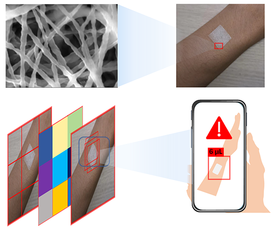 圖1. 基于納米織物和目標檢測算法的智能比色法電子皮膚示意圖。