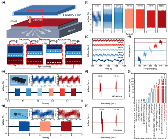 圖5. S-P/G@PU e-skin的高頻振動傳感性能