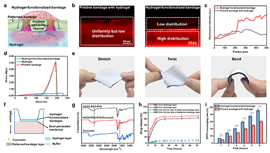 圖3. 水凝膠功能化繃帶的性能表征