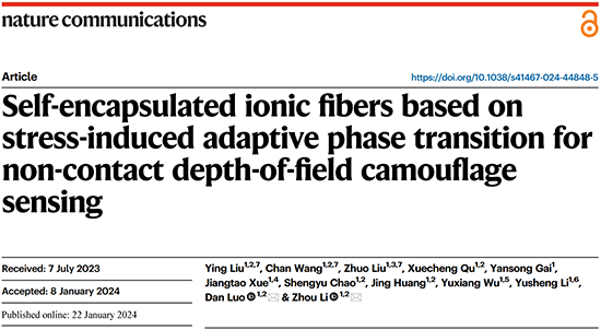 中科院納米能源所李舟/羅聃研究員《Nat. Commun.》:應力誘導自適應相變制備自封裝離子纖維用于非接觸景深傳感