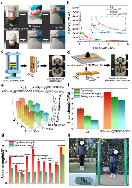 圖5 多糖基仿生膠黏劑的木/竹材膠合性能
