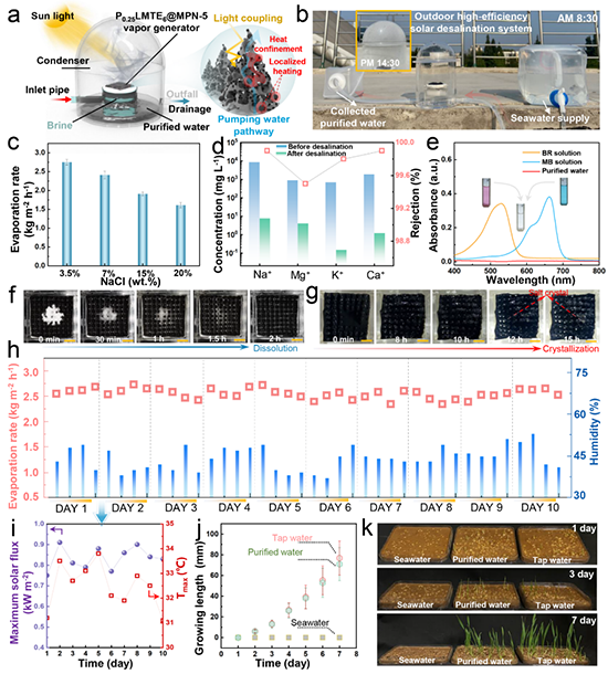 圖5.優化PxLMTEi@MPN基太陽能海水淡化系統的建立和驗證。