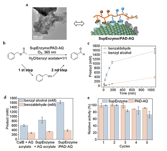 圖3. 聚集體用于可循環(huán)的光生物催化級(jí)聯(lián)反應(yīng)。
