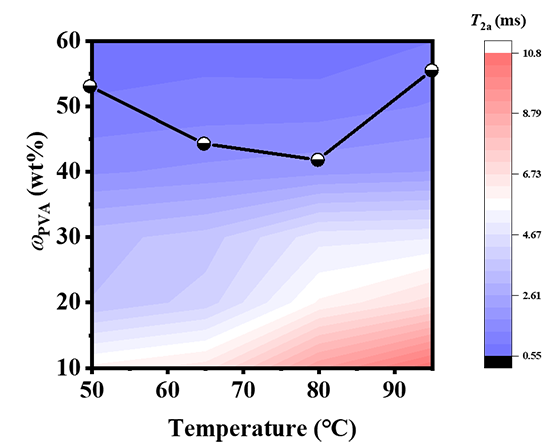 圖 3. “溫度- PVA 質量分數” 二維空間中 PVA 鏈運動性的等高線圖。