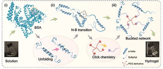 圖1 基于蛋白質相互作用和巰基點擊反應相結合的蛋白質水凝膠體系