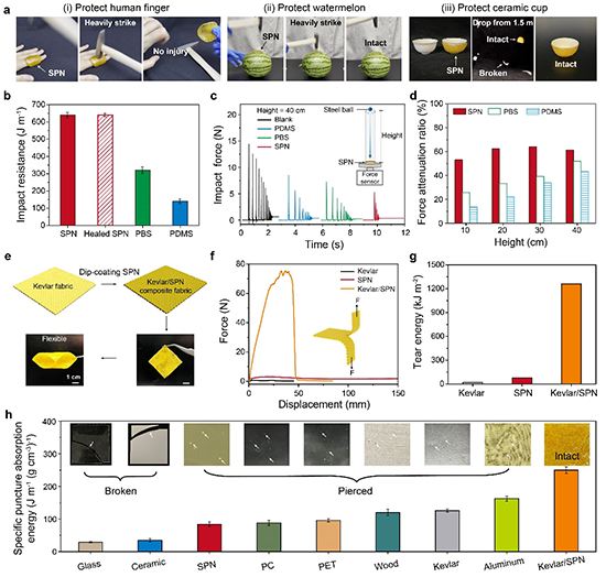 圖5.沖擊硬化超分子聚合物及其復合織物的抗沖擊性能