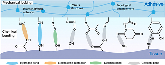 圖2 高分子材料與口腔之間的粘連機(jī)制:機(jī)械鎖定和化學(xué)粘合