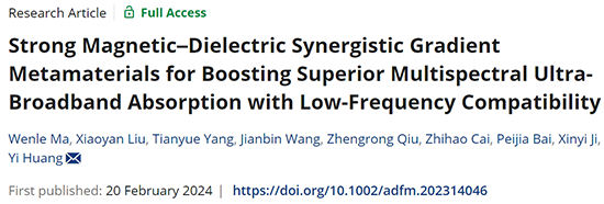 - 西工大孔杰教授團隊 AFM:雙層超材料實現電磁波吸收傳輸一體化 2026-02-03