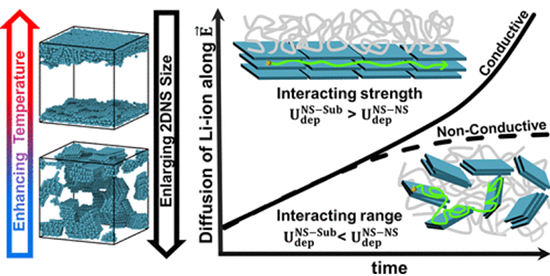 隨著高性能薄膜材料和柔性電子器件等技術產業的不斷發展,市場對于以聚合物為基體材料的性能和功能要求也在日益提高。在這一背景下,通過向高分子基體中添加補強填料,可以獲得兼具多功能和高性能的高分子復合材料。在眾多填料中,二維納米片填料由于其豐富的種類和易修飾的界面而成為當前研究的焦點。尤其值得注意的是,當二維納米片填料以有序方式填充聚合物時,可以使復合材料在特定方向上獲得極大的性能和功能增強。然而,二維納米片具有一定柔性,單個二維片具有非對稱的幾何特征,導致實現二維納米片在高分子網絡中的有序自組裝填充往往需要復雜的手段和設備條件,如何簡化這一過程是當前研究中的一個重要挑戰。此外,目前相關領域的理論研究相對匱乏,如何從微觀動力學角度理解二維納米片與高分子共混后的聚集自組裝行為仍待深入探討。
