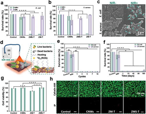 圖7. ZM-T/ZMS-T壓力傳感器的抗菌性能和細(xì)胞毒性研究