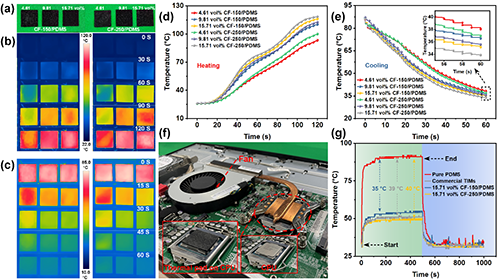 圖5 CF/PDMS復合材料的熱紅外成像照片及熱管理展示