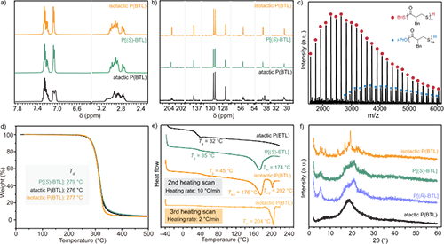 首先,作者合成了rac-α-Bn-β硫內酯單體(圖1),通過使用rac-SalBinamAl催化劑可以得到完全等規P(BTL)。如果使用光學純(R/S)-SalBinamAl,在100:1:1的室溫條件下反應15 min可以實現外消旋單體rac-BTL的完美動力學拆分聚合,當轉化率為50%左右時,得到的聚合物等規度大于0.99,所剩余單體ee值大于99%。