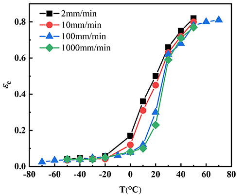 圖6. 不同溫度/速率下缺口增塑PVB 的裂紋擴展的臨界應變。