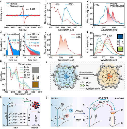 碳點 (CDs) 作為新興的 0D 發光納米材料之一,具有豐富的光學性能和優異的生物相容性、高穩定性和低毒性等,近年來引起了人們的極大興趣。而且,CDs的光致發光特性可以與光致變色相結合,在外界刺激下表現出動態可調的顏色變化,具有多功能光響應性能。然而,由于多功能光響應碳點材料的構建原理和機理的限制,在設計光致變色長余輝碳點方面仍然具有挑戰性。