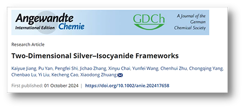 目前該工作以“Two-Dimensional Silver–Isocyanide Frameworks”為題在線發表在《德國應用化學》(Angew. Chem. Int. Ed. 2024, e202417658.)上。該論文的第一作者為上海交通大學化學化工學院博士研究生姜愷悅。該項工作得到了國家基金委、上海市科委、中國博士后基金等資助。
