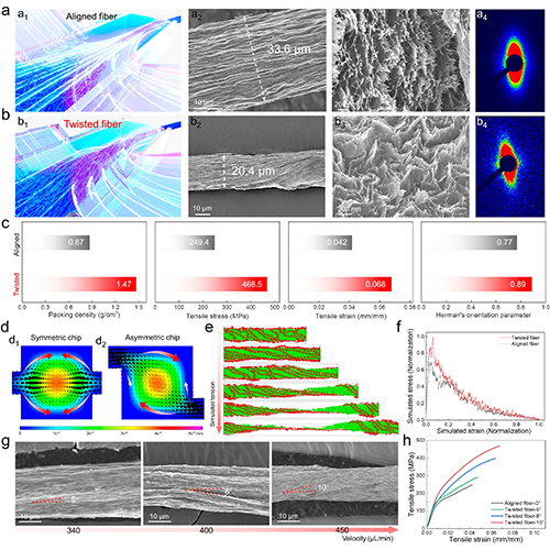 圖2.扭轉纖維和取向纖維的結構、性能、形成及形變機制探究