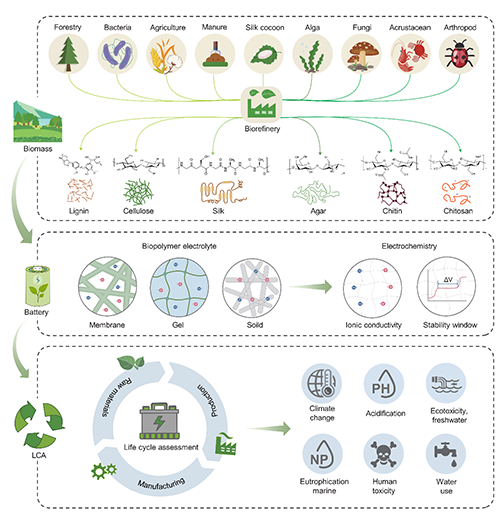 全球氣候和生物多樣性危機促使能源存儲向可再生、可持續轉型,作為在能量儲存中占據重要地位的鋰電池面臨著向可持續電池發展。以天然來源的生物基聚合物充當電解質,為解決上述困境開辟了新的路徑。但就目前研究而言,對于生物基聚合物電解質的環境影響的研究還不全面,缺乏統一且標準化的評估指標來衡量其環境可持續性。