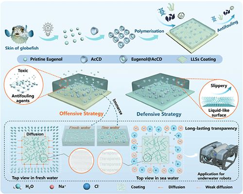 圖1. LLSs涂層的構建、防污策略和海水持久透明機制示意圖