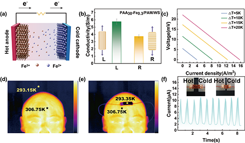 近期,南京林業大學陳楚楚課題組以輕木為原料,脫基質處理后獲得木材纖維素骨架,通過紫外光(UV)引發接枝的聚合方式,在不使用任何化學引發劑的條件下,制備得到聚丙烯酰胺(PAM)/聚丙烯酸(PAA)木基復合凝膠,最大拉伸強度可達42.2 MPa,且兼具優異的抗溶脹性能及紫外屏蔽功能。將該木基復合凝膠作為柔性基材組裝構建傳感器件,可用于運動監測、熱電傳感、水下傳感及智能家居等領域(圖1)。