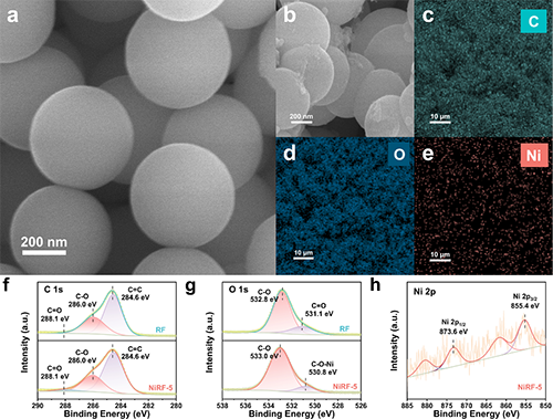 圖2. NiRF納米球形貌,元素分布及高分辨率XPS光譜