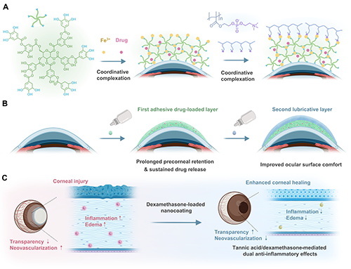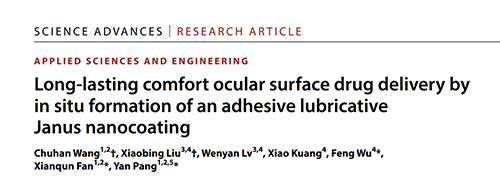 上海交大龐燕團隊 Sci. Adv.:原位“兩面神”載藥涂層 可實現持久舒適的眼表給藥