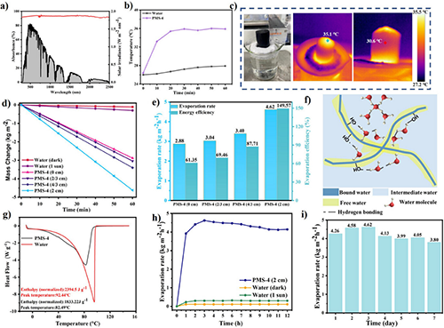 圖3.PMS蒸發器的界面蒸發性能及機理分析和蒸發穩定性