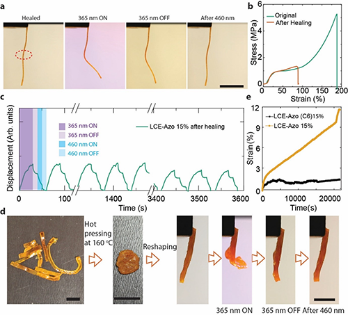 圖3. 光化學LCE的可回收性。